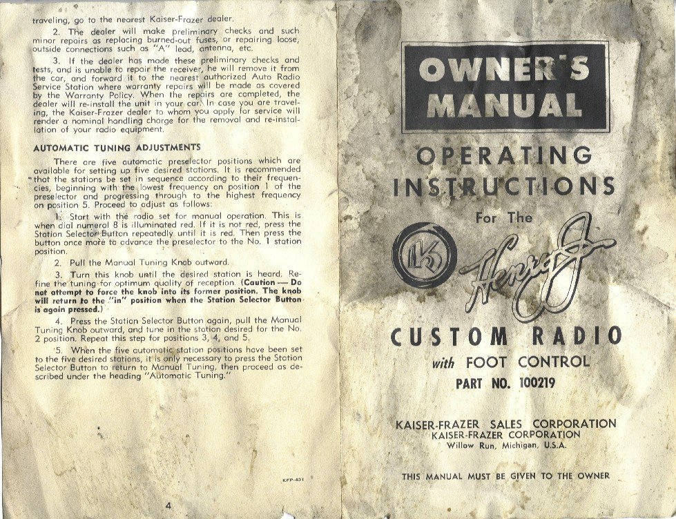 1951 Henry J manual is not a manual at all in the conventional sense but instead is a
