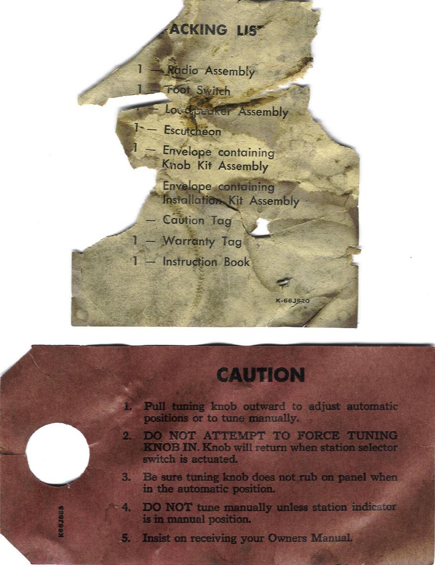 and 1948 Kaiser and Frazer Radios. They were installed by means of